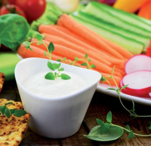 Raw vegetables of all kinds served alongside a good hummus (chickpea and sesame paste with spices) or a tzatziki with organic yogurt and cucumbers, corn or rice not fried chips... Apulian artichokes and oil-free grilled onions, yeast-free spelt crackers with herb mayorice, a nice tabuleè of Bulgur with pesto cherry tomatoes and fresh mint...