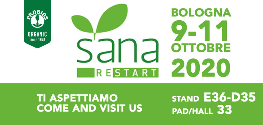 Anche per il 2020 saremo presenti a SANA - Salone internazionale del Biologico e del Naturale. Un appuntamento da sempre fondamentale ed entusiasmante per noi e che quest’anno porta con sé un bagaglio fatto di speranza, impegno e fiducia, segnando una vera e propria ripartenza dopo la pandemia. Non a caso il nome dell'evento quest'anno è SANA RESTART.