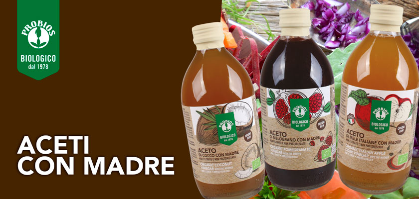 A seguito di lunghe ricerche su questo nobile prodotto, siamo felici di poterti finalmente presentare una nuova linea di gustosi aceti, realizzati a partire da mele, melograni e dal nettare di fiori di cocco: ingredienti tutti provenienti da coltivazioni biologiche, con la caratteristica comune di conservare la madre, ovvero la cellulosa prodotta dai batteri attivi dell’acido acetico, visibili come filamenti presenti all’interno del liquido.