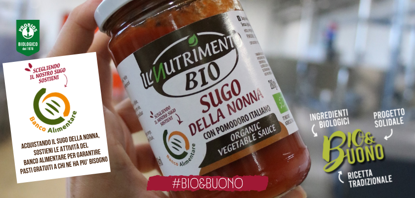 Quest’anno con il progetto "Bio e Buono" abbiamo deciso di dedicare un'intera produzione di Sugo Della Nonna de Il Nutrimento, biologico ed a base di pomodoro italiano e verdure, ad una special edition solidale: parte del ricavato delle vendite sarà infatti devoluto al Banco Alimentare.